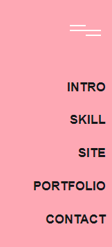 웹에서는 기본적으로 헤더 메뉴가, 모바일에서는 메뉴 버튼을 누르면 메뉴가 보이도록 하고 디자인에도 차별점을 줘봤다.
