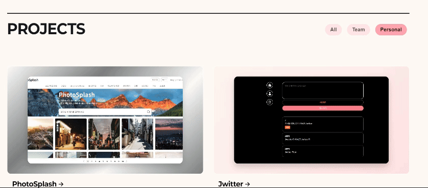 아래 화면은 필터 종류에 따라 filteredProjects 라는 상태에 프로젝트 배열을 저장하여 보여주고 있다.