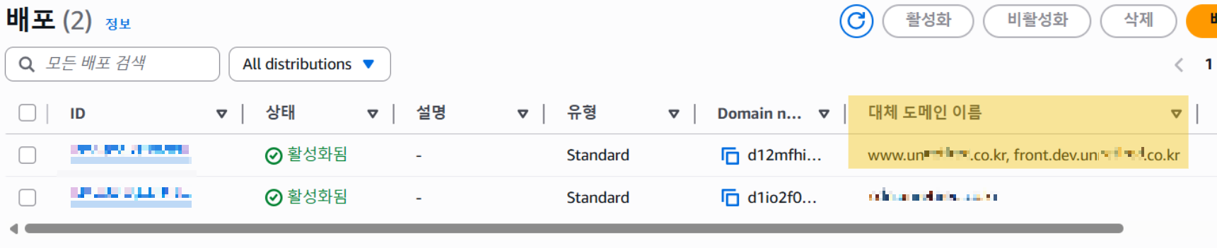 - Alternate domain name(CNAME)에 개발 도메인 추가